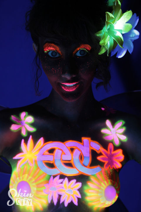 Stand out in the crowd and beat the EDC heat this summer. Have one of our professional body paint artists decorate you in Glow / UV Body Paint, the perfect EDC outfit for everyone. Las Vegas is the flagship host of the world-renowned Electric Daisy Carnival, held yearly at the Las Vegas Motor Speedway. We have a full spectrum of glow/uv paint that’s safe for skin and won’t rub, smear, streak or flake off.