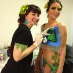 Robin and her talented team ventured out to the Palms Casino today to celebrate MTV’s Spring Break. The event was sponsored by SoBe, who provided free SoBe’s to all. (Robin’s favorite flavor was Piña Colada!) Skin City provided sexy models Randalene and Britt (who happens to be our March Model of the Month) decorated with body painted SoBe green scales!